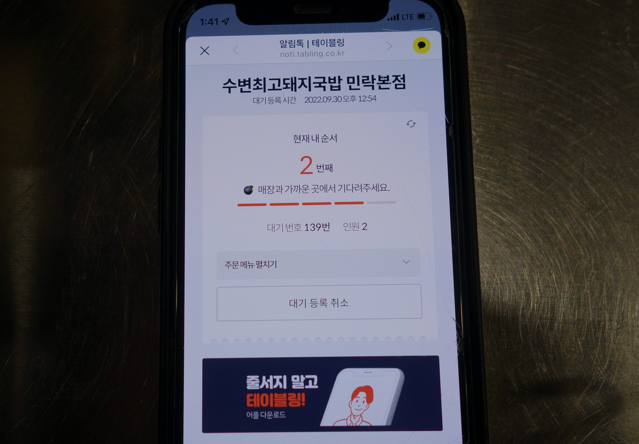 테이블링 원격 줄서기 가능