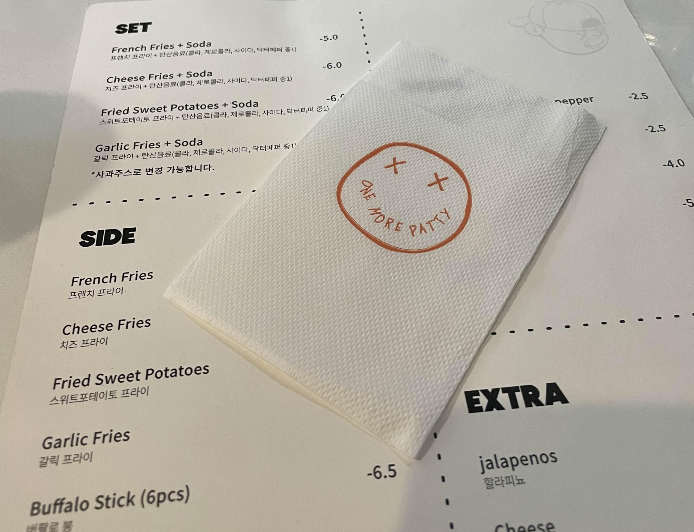 일단 여기 오면 원모어패티에 할라피뇨 추가메뉴는 꼭 맛보시는 걸로!!!!!!
